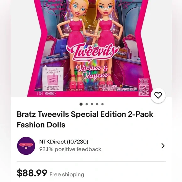 Bratz Tweevils Special Edition 2-Pack Fashion DollsMean girl alert! It’s the Tweevils, Kirstee and Kaycee, the seriously evil twin duo who are out to wreck the Bratz plans, as long as they don’t wreck themselves first. Clad in pink and ready to rule the fashion world (at least they think so), these girls are nothing but bad news!New in box never opened i have 8 of them price for each msg me if you want multiplesChristmas present gift toy girls