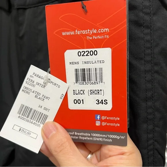 Sturdy waterproof breathable nylon shell fabric, highest level of insulation, and partial microfleece lining ensure cozy warmth and dryness. Fit, Fabric + FeaturesClassic Straight leg100% Nylon dobby weave shell fabric + water-resistant surface treatment, 5k/5k Waterproof breathable coating, 80g Thermotouch insulationCritical seam sealed, Velcro waist tab adjustment, 2 zip pockets, belt loops, Cuff zips with gusset, Boot gaiters, Short: 30"