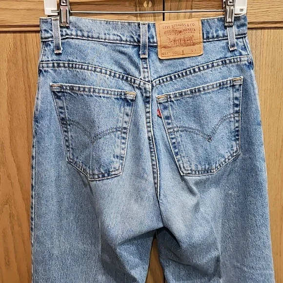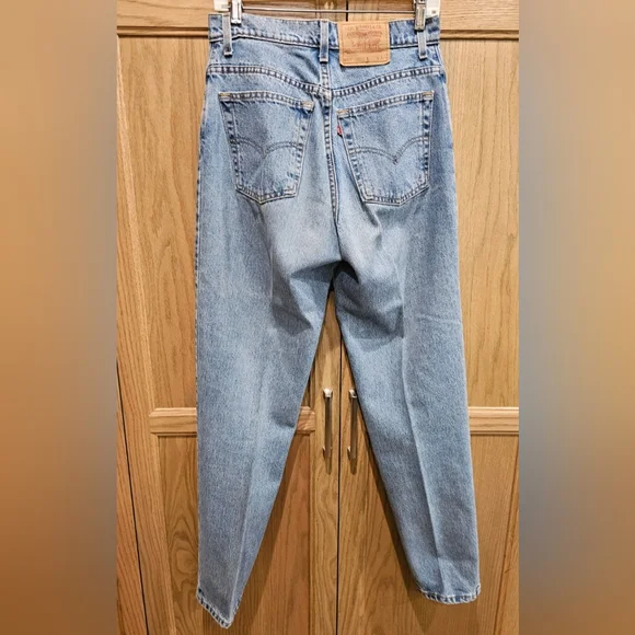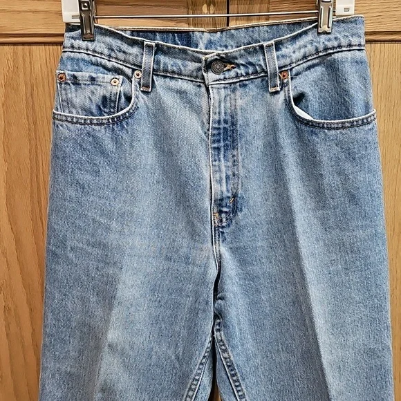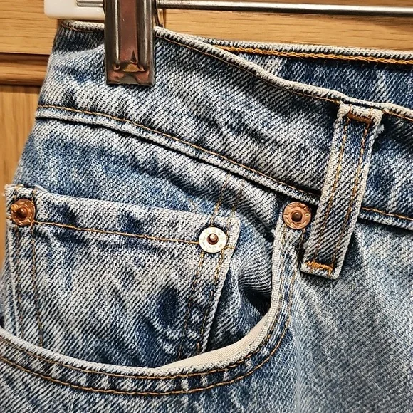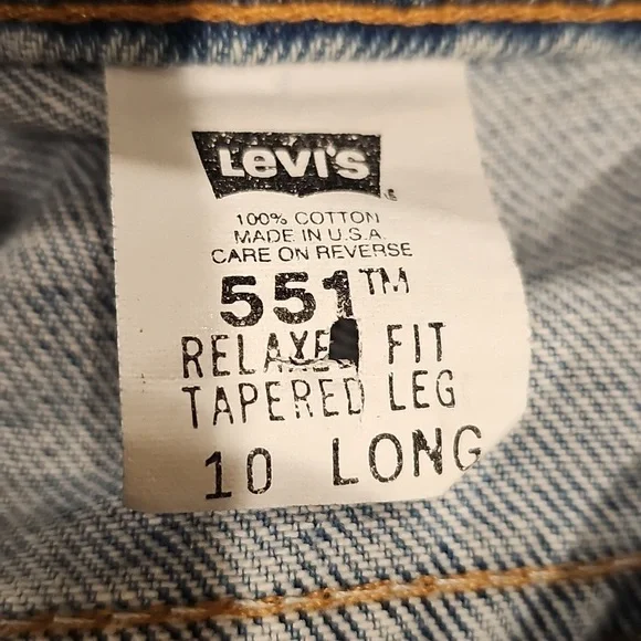 Vintage Women's Levi's jeans - likely 80s or 90s given the closet they came out of!In amazing shape551 relaxed fit Tapered LegSize 10 longLight blueZip and button fly5 pocket stylingCopper colored buttons and rivets on frontBelt loops15" waist32 1/2" inseam13" rise6 1/2" leg openingall measurements approximate